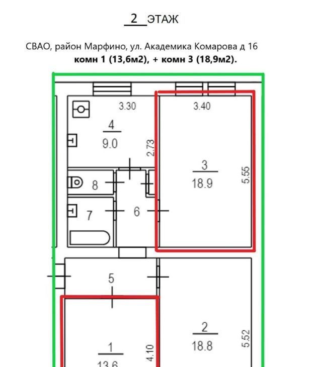Комната Москва ул. Академика Комарова, 16 (33.0 м²)