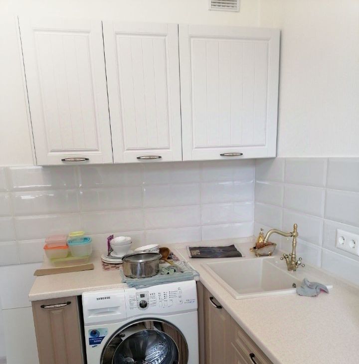 * Просторная кухня (11 м²), холодильник, стиральная машина.