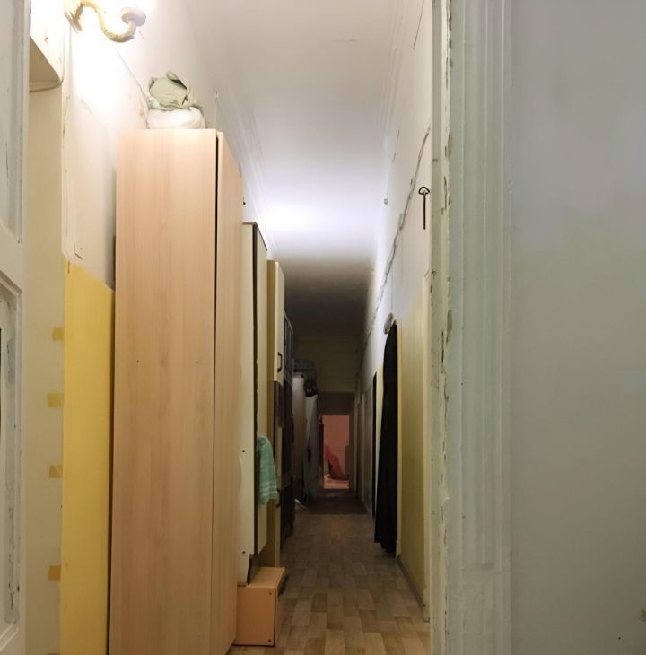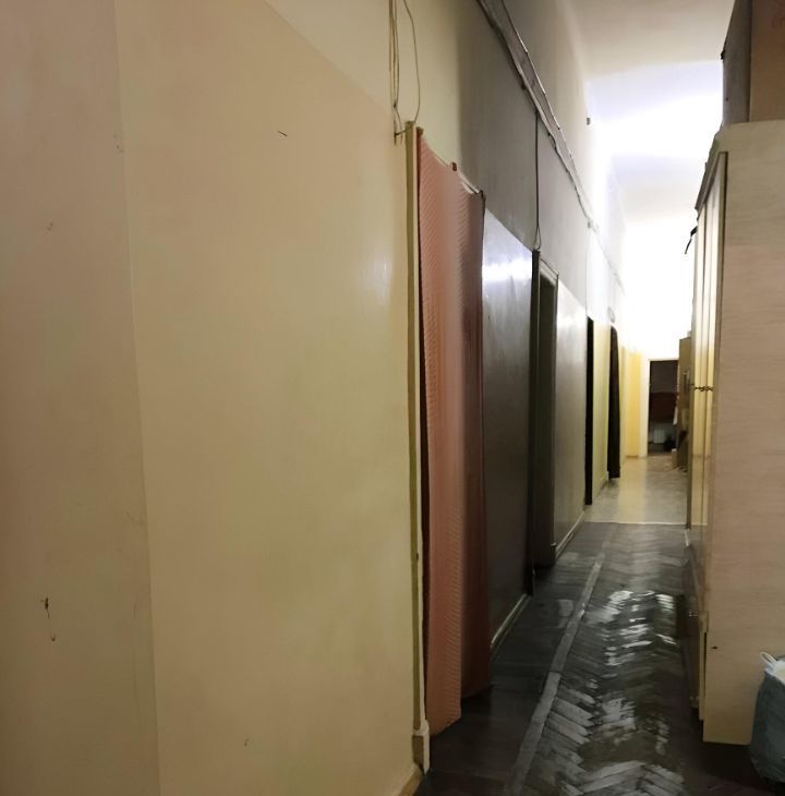 Комната 15,3 кв.м. с высокими потолками (4,1 м.) расположена в 16-и комнатной коммунальной квартире. Квартира коридорного типа.