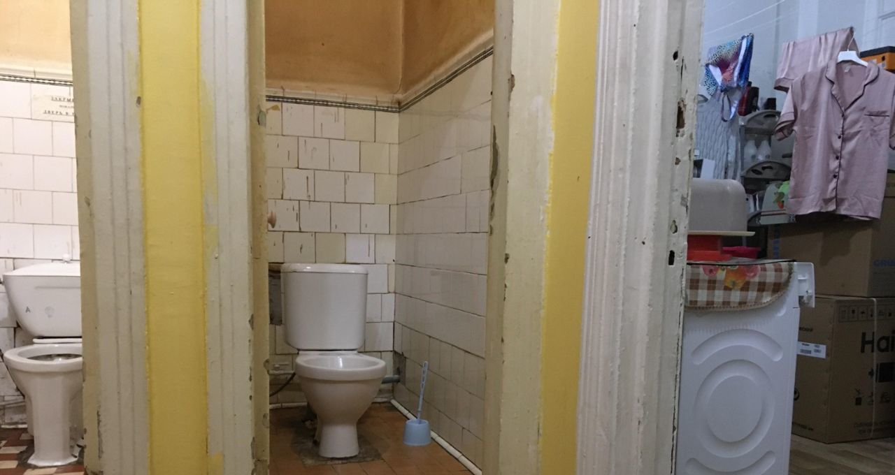 2 туалета и помещение (где находится стиральная машинка) расположены рядом с комнатой.
