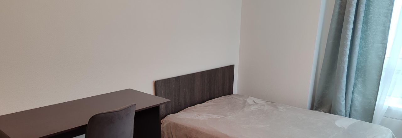 В комнате есть большой шкаф, удобная кровать с матрасом, стол, стул. Из окна открывается чудесный вид на Москву.