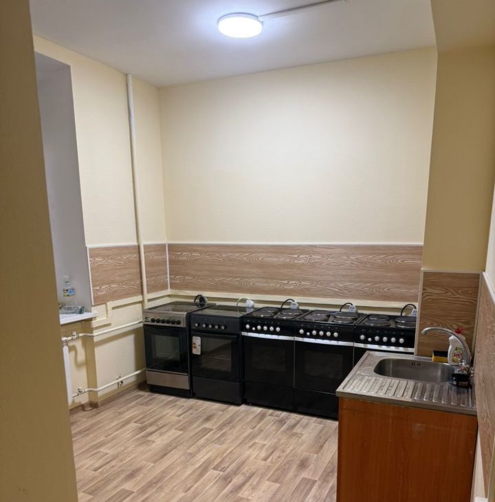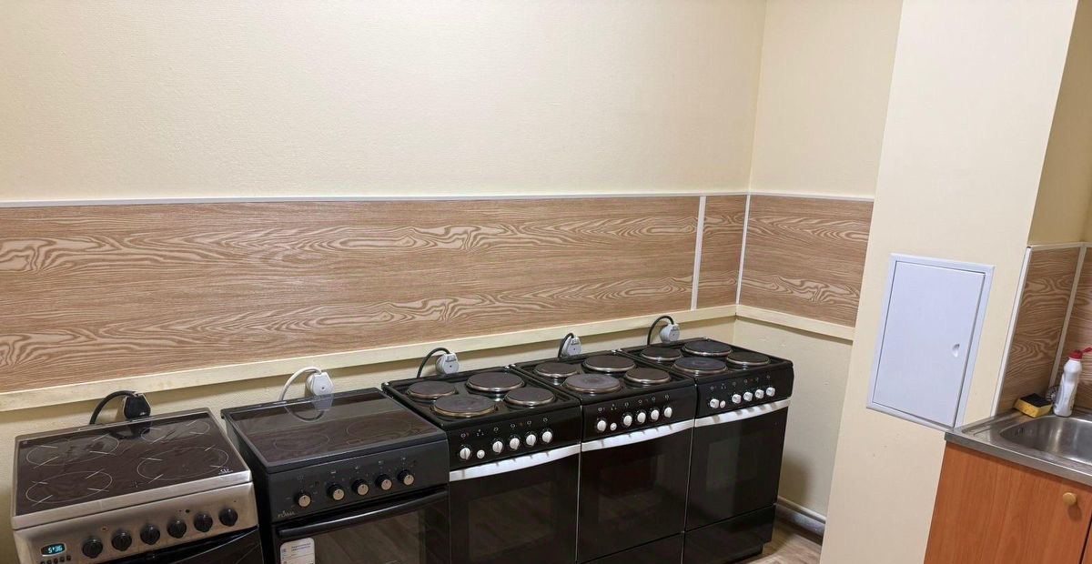 В общем доступе кухня с 5 плитами , постирочная с 4 стиральными машинками , три туалета и 2 душевых.