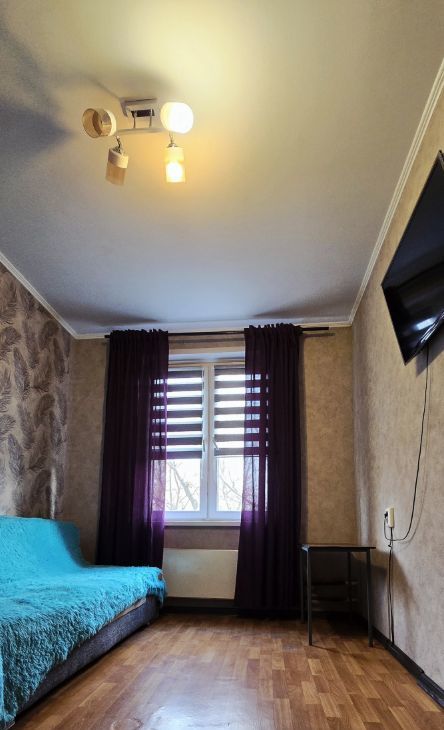 Комната включает в себя двуспальный диван, компьютерный стол, компьютерный стул на колесах, тв, вместительный гардероб с зеркалами в пол. Свой личный холодильник.