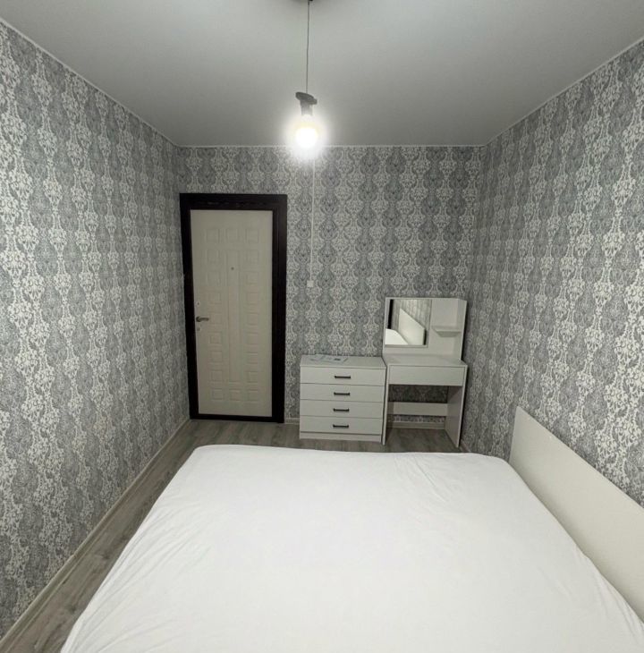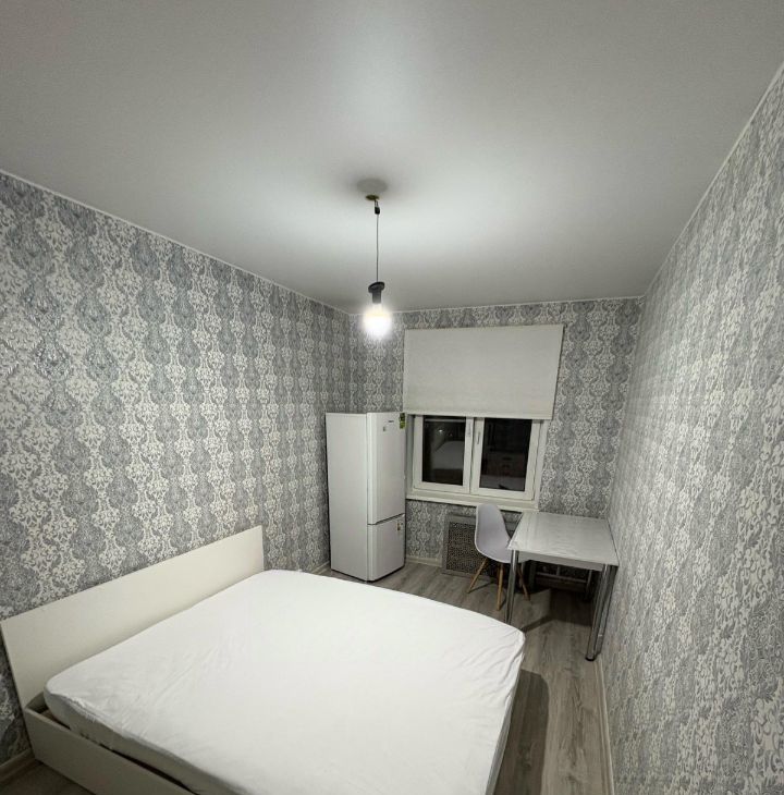Комната укомплектована (кровать, комод, обеденный стол, туалетный столик). В квартире есть вся техника для комфортного проживания (стиральная машина, холодильник, микроволновка).