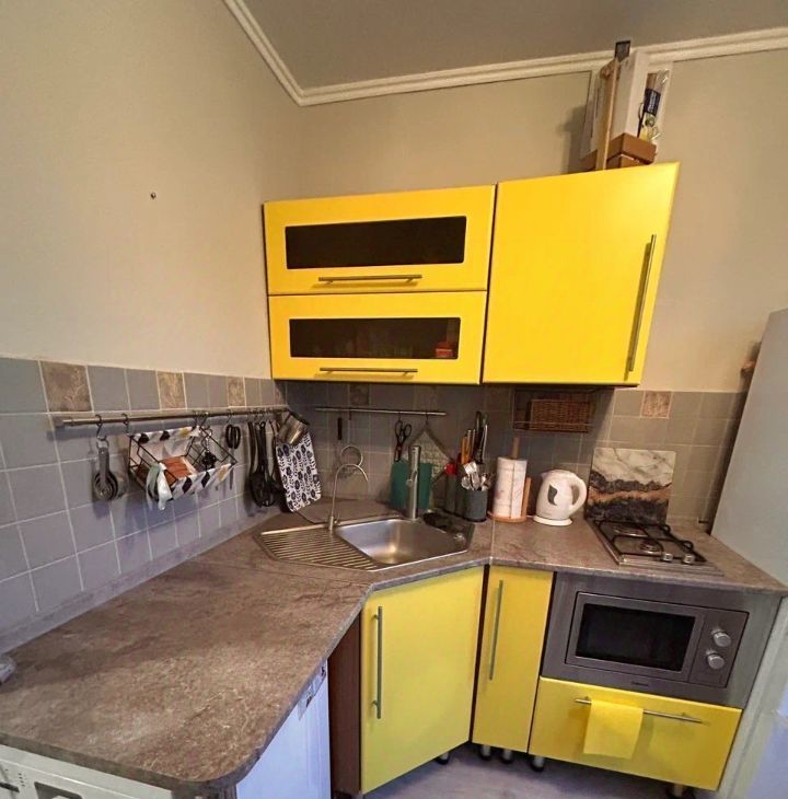 Площадь квартиры - 26 кв. м, жилая площадь - 14 кв. м, площадь кухни - 6 кв. м. Высота потолков - 2.64 метра.