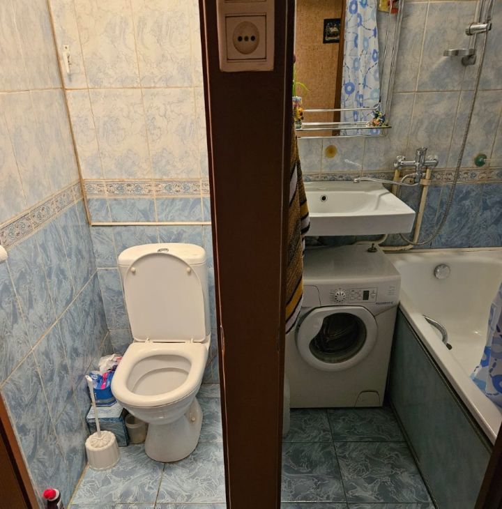 Раздельный санузел, стиральная машинка, большой холодильник, микроволновка.