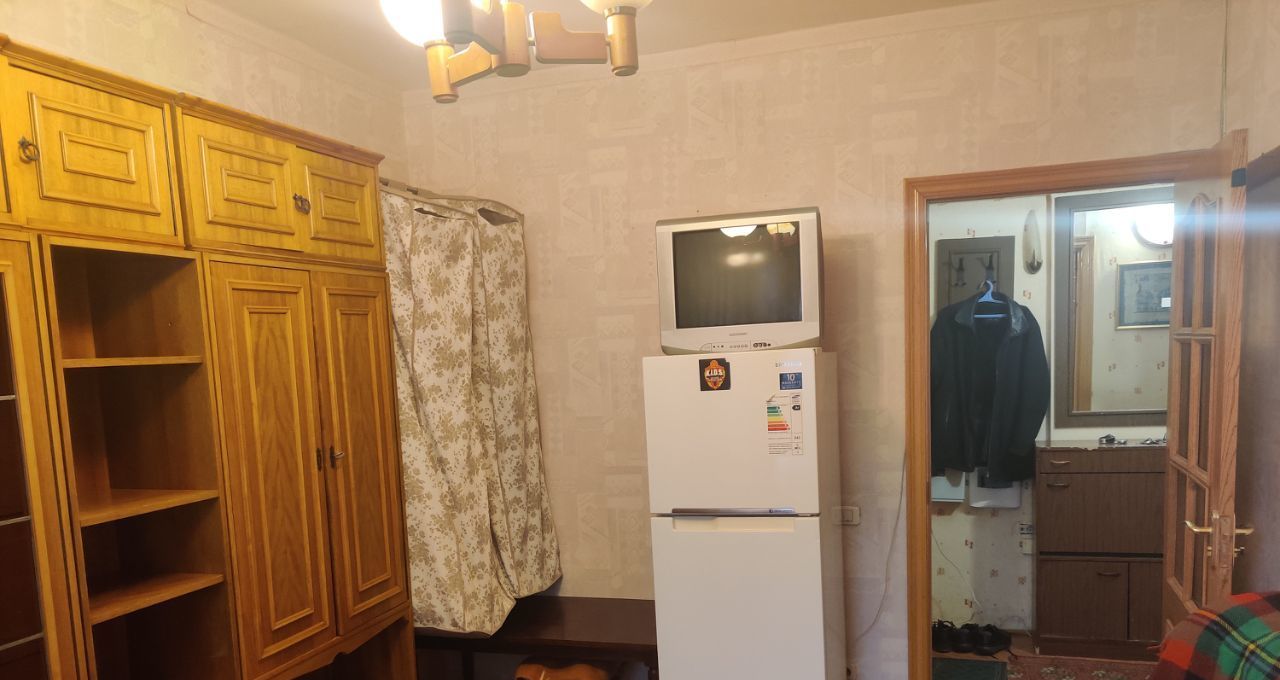 В комнате: диван-кровать, шкаф, свой холодильник, телевизор, интернет.