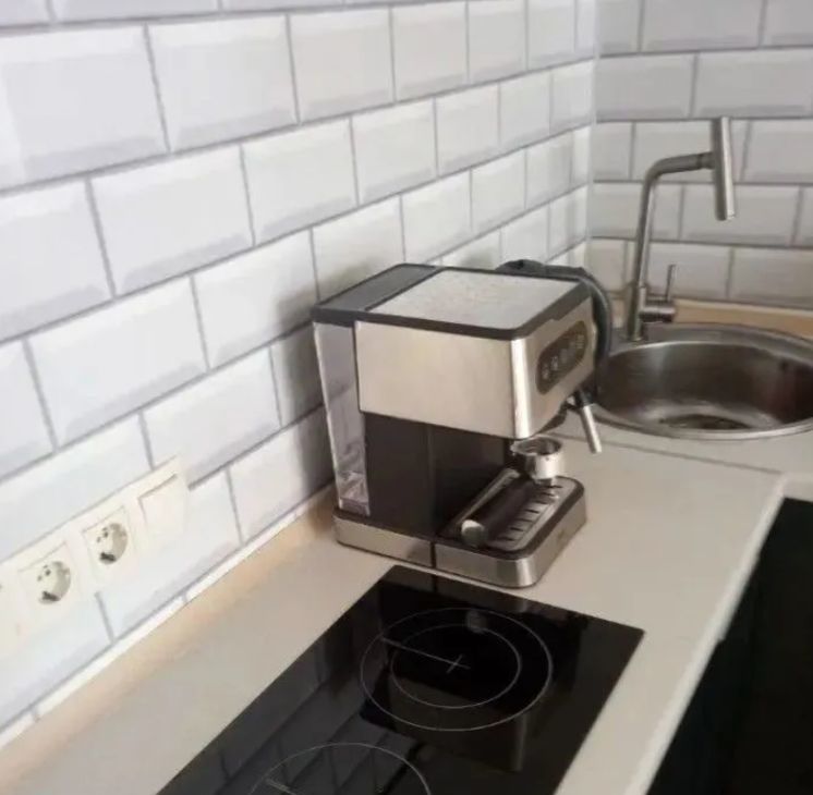 Кухня с барной стойкой, электрической варочной панелью Simfer (2 зоны нагрева) и