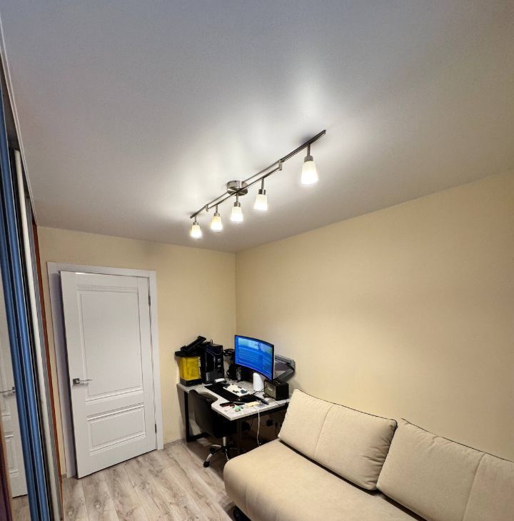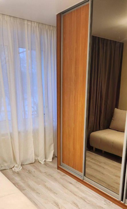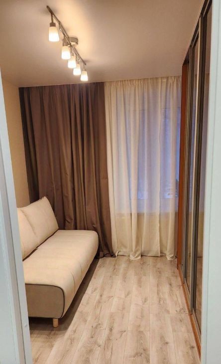 Комната небольшая, но очень теплая и уютная. Большой шкаф для хранения вещей, раскладной диван с топером, black-out шторы, робот-пылесос. Рядом с диваном можно поставить стол и стул для работы (пример на фото: стол, стул и компьютер уедут).