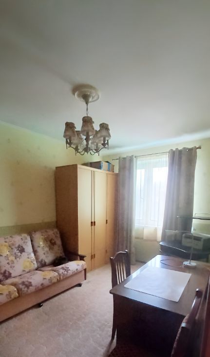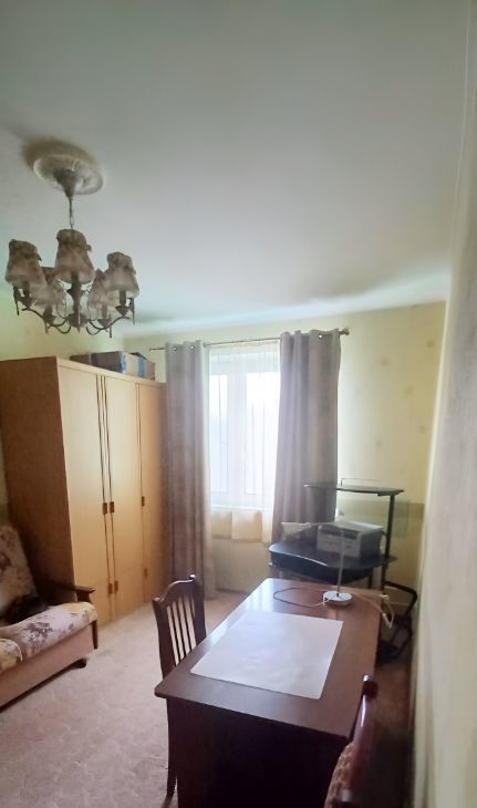 В комнате: большой шкаф,компьютерный стол,письменный стол,стул,настольная лампа,шторы с заземлением. Выходя из комнаты,попадаешь в большой холл.В квартире есть все необходимое для хорошей жизни.