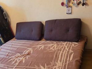 Комната - 15 кв.м. В комнате есть шкаф, двухъярусная кровать (длина - 2м.), раскладной диван, письменный стол (на фото его нет, так как позже занесли), кондиционер и балкон 2 кв.м. При необходимости докупим новый матрас для кровати. В разобранном состоянии есть ещё один шкаф для вещей, при необходимости можем его собрать. Балкон полностью застеклён. Стоят пластиковые окна. Окна выходят во двор. По вашему желанию можно сделать перестановку мебели. Комната закрывается на ключ.