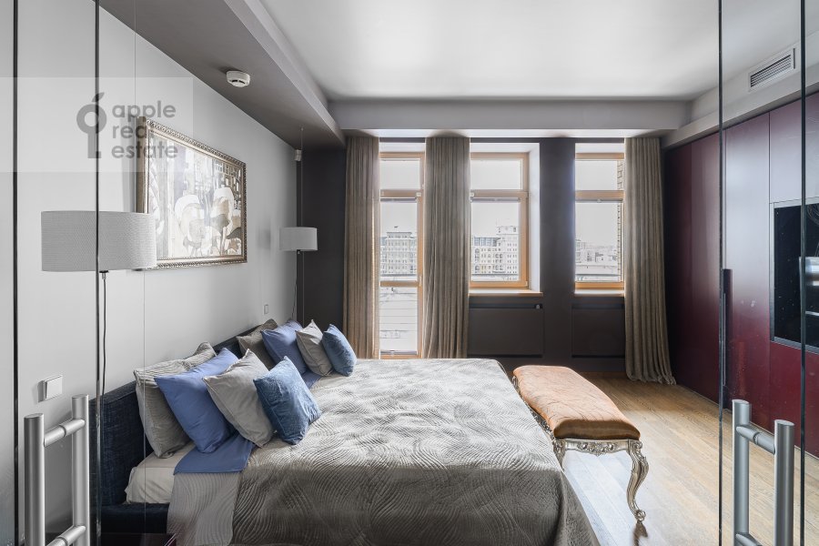 Стильная 4-комнатная квартира в элитном доме. 10 / 12 этаж. Спален: 2, санузлов: 3. Общая площадь: 178 кв.м. Потолки 3.3 м. Ремонт в уникальном авторском стиле. Квартира полностью с мебелью, вывоз обсуждается. Вооруженная охрана в подъезде. Подземный паркинг, машиноместо входит в стоимость. Открытый вид, много света. Есть балкон. Есть гардеробная комната. В наличии: посудомоечная машина, холодильник, кондиционер, бойлер, душевая кабина, ванна, постирочная комната, стиральная машина, сушильная машина, подогрев полов. Телевизор, высокоскоростной интернет. Можно с детьми. Можно с животными. Собственник ИП. Возможна оплата по безналу.