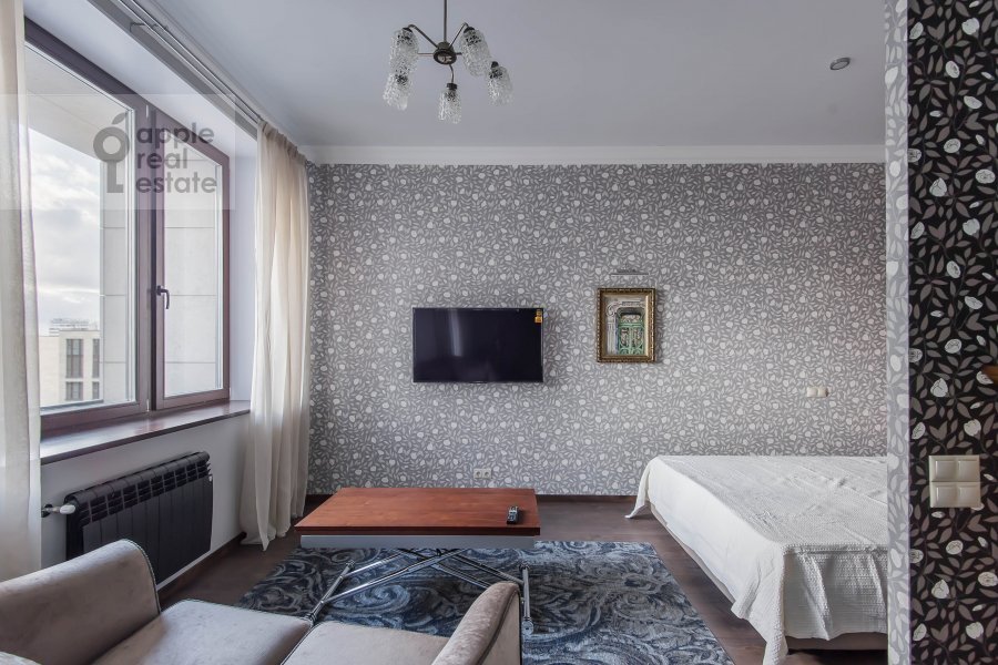 ЖК Редсайд. Чудесная квартира студия в элитном доме. 7 / 21 этаж. Спален: 1, санузлов: 1. Общая площадь: 48 кв.м. Потолки 3.1 м. Ремонт в уникальном авторском стиле. Квартира с мебелью, вывоз невозможен. Огороженная, охраняемая территория. Подземный паркинг, машиноместо оплачивается отдельно. Окна в тихий двор. Есть балкон. Есть гардеробная комната. В наличии: холодильник, кондиционер, душевая кабина, ванна, стиральная машина. Телевизор, высокоскоростной интернет. Возможна оплата по безналу.
