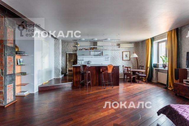 Великолепная квартира студия в сталинском доме. 7 / 8 этаж. Спален: 1, санузлов: 1. Общая площадь: 74 кв.м. Потолки 3 м. Ремонт в уникальном авторском стиле. Квартира с мебелью, вывоз невозможен. Домофон. Паркинг стихийный во дворе. Окна на улицу. Есть гардеробная комната. В наличии: посудомоечная машина, холодильник, кондиционер, ванна, стиральная машина, подогрев полов. Телевизор, высокоскоростной интернет. Можно с детьми. Можно с животными.