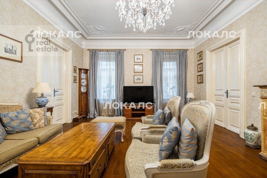 Чудесная 5-комнатная квартира в дореволюционном особняке, расположенная на 2 этаже 5 этажного здания. Спален: 3. Ванная комната + гостевой санузел. Общая площадь: 155 кв.м. Потолки 3.2 м. Ремонт в классическом стиле. Квартира полностью с мебелью, вывоз обсуждается. Посудомоечная машина, холодильник, кондиционеры, ванна, стиральная машина с сушкой, подогрев полов, телевизор, высокоскоростной интернет. Гардеробная комната. Домофон. Охраняемый двор и стихийный паркинг. Окна выходят на обе стороны. Можно с детьми, можно с животными.