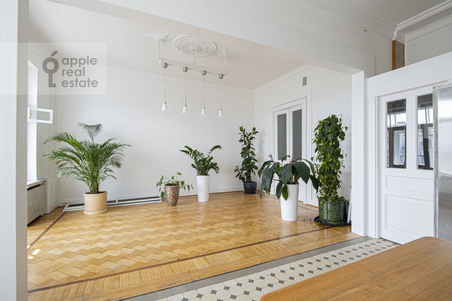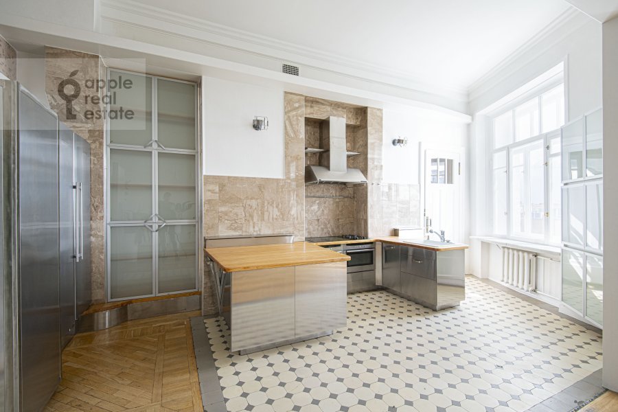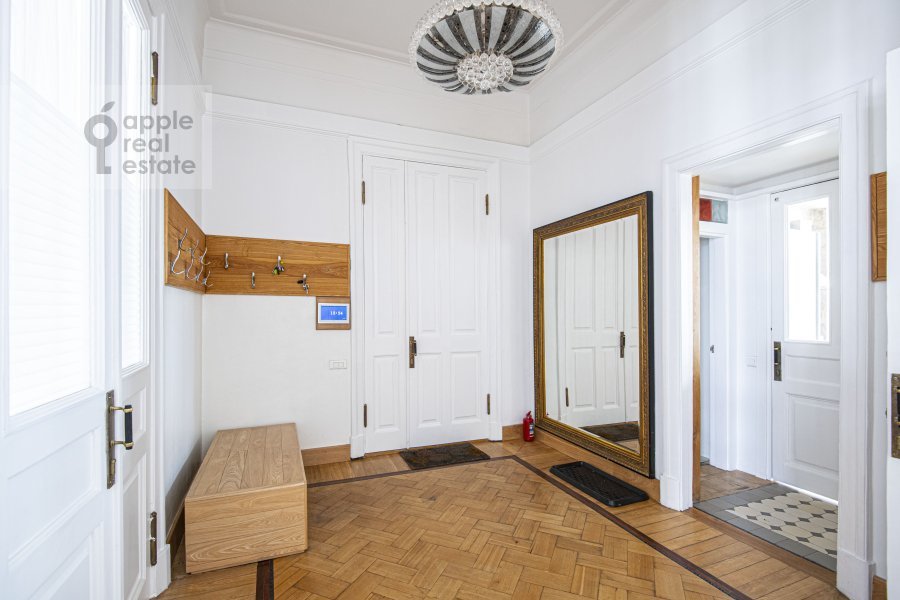 Светлая 5-комнатная квартира в дореволюционном особняке, расположенная на 6 этаже 7 этажного здания. Возможна закупка необходимой мебели под клиента. Квартира после реставрации, метлахская плитка, дубовые паркетные полы с инкрустацией красным и черным деревом, золотистой мозаикой, отделка мрамором и латунная фурнитура. Просторная гостиная. Кухня-столовая с балконом. Спален: 4, санузлов: 3. Общая площадь: 210 кв.м. Потолки 4 м. Домофон. Паркинг стихийный во дворе дома. Открытый вид, много света. Есть балкон. Есть гардеробная комната. В наличии: посудомоечная машина, холодильник, душевая кабина, ванна, стиральная машина, подогрев полов. Высокоскоростной интернет. Можно с детьми. Можно с животными. Собственник ИП. В шаговой доступности бульварное кольцо, магазины, рестораны, школы, детские сады. Удобный выезд на садовое кольцо.