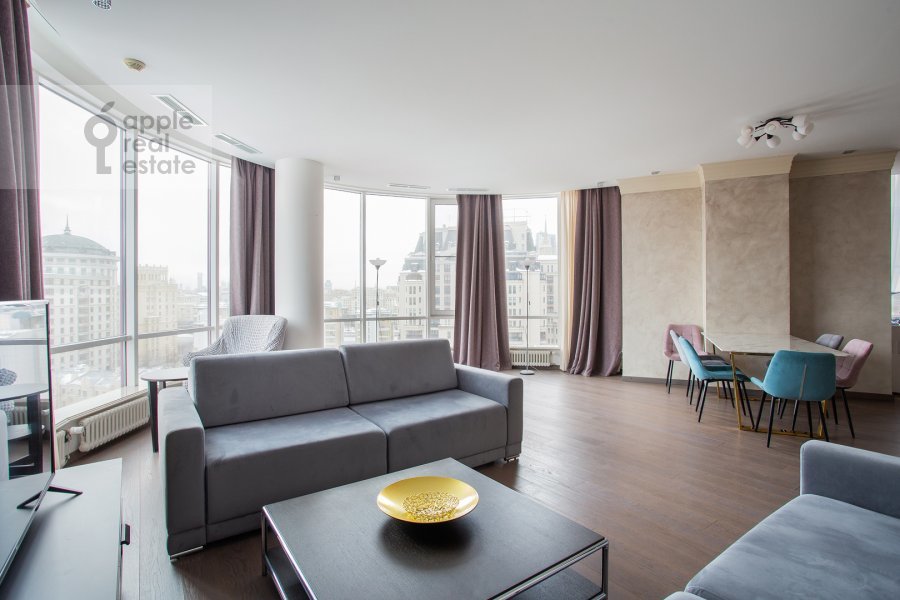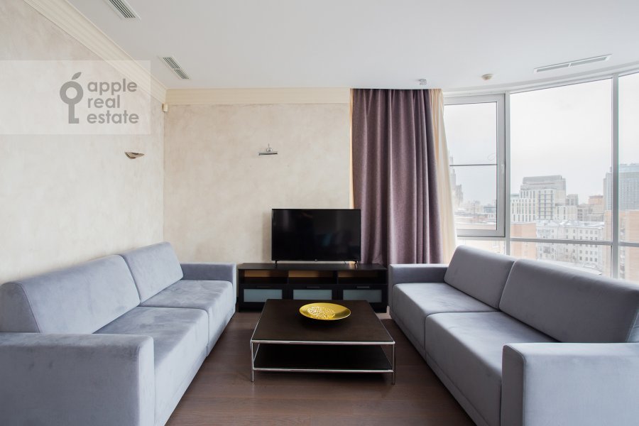 ЖК Новый Арбат, 27. Великолепная 4-комнатная квартира в элитном доме. 9 / 16 этаж. Спален: 3, санузлов: 2. Общая площадь: 173,5 кв.м. Потолки 3 м. Ремонт в современном стиле. Квартира полностью с мебелью, вывоз обсуждается. Огороженная, охраняемая территория. Подземный паркинг, машиноместо входит в стоимость. Панорамный вид из окна. Есть гардеробная комната. В наличии: посудомоечная машина, холодильник, приточно-вытяжная система вентиляции и кондиционирования, кондиционер, бойлер, душевая кабина, ванна, стиральная машина, подогрев полов. Телевизор, высокоскоростной интернет. Можно с детьми. Можно с животными. Собственник ИП.