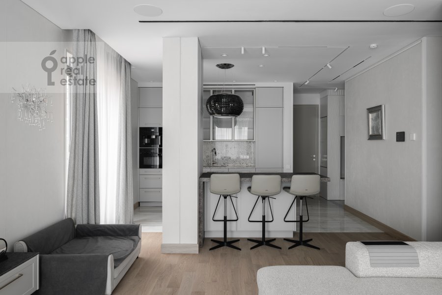 Планировка квартиры: кухня-гостиная, мастер спальня с собственной гардеробной и ванной комнатой с душевой и ванной, 2 дополнительных спальни, второй c/у с душевой кабиной. Квартира с потрясающим дизайнерским ремонтом. В отделке использованы дорогостоящие отделочные материалы. Мебель премиальных итальянских брендов, бытовая техника от Miele, сантехника от Villeroy & Boch. В квартире установлен умный дом, который позволяет управлять климат контролем, шторами, освещением, музыкой. Итальянская плитка с подогревом полов, паркет-натуральное дерево. Высокие потолки, панорамные окна в пол. Много мест для хранения.