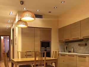 Просторная евроквартира после евроремонта, полностью обставленная необходимой мебелью и бытовой техникой, включая посудомоечную машину. Просторная кухня в едином пространстве с гостиной, два санузла, подогрев полов, гардеробная, пластиковые окна, застекленный балкон, цифровое телевидение, интернет. Наземный паркинг, тихий зеленый двор с детской площадкой.
