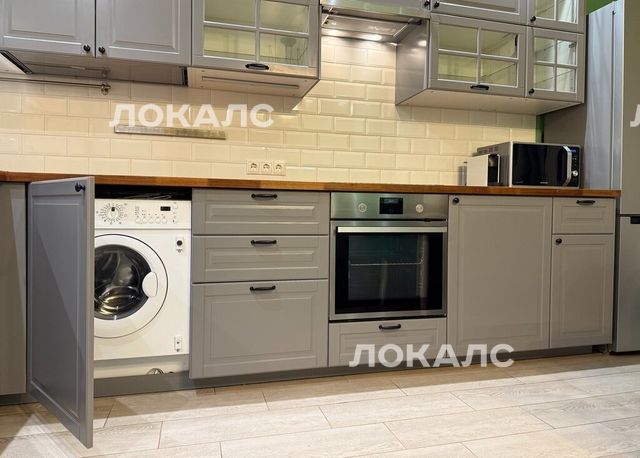 В квартире есть стиральная машина, кондиционер, два больших встроенных шкафа, кровать с подъемным механизмом, духовой шкаф, СВЧ-печь, холодильник, wi-fi, интернет-порт в зале, домофон.
