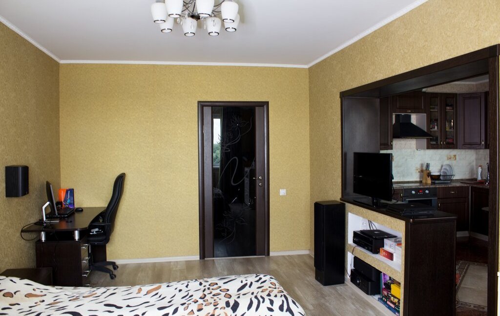 Сдается просторная однокомнатная квартира-студия на длительный срок. Квартира светлая, уютная, с частичным видом на лес.