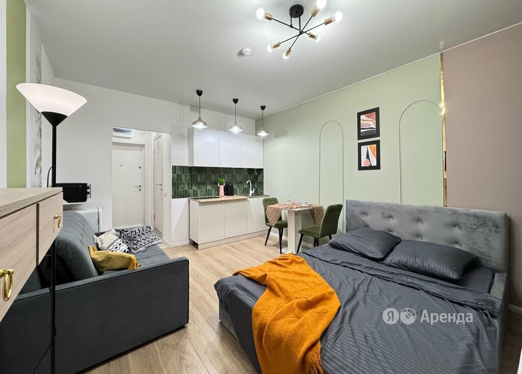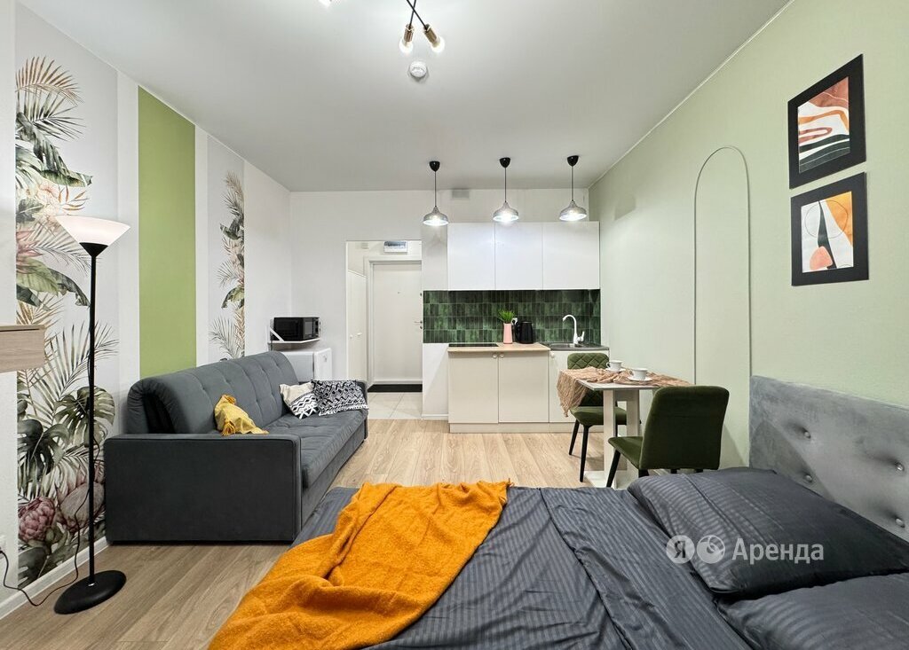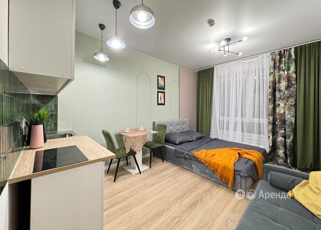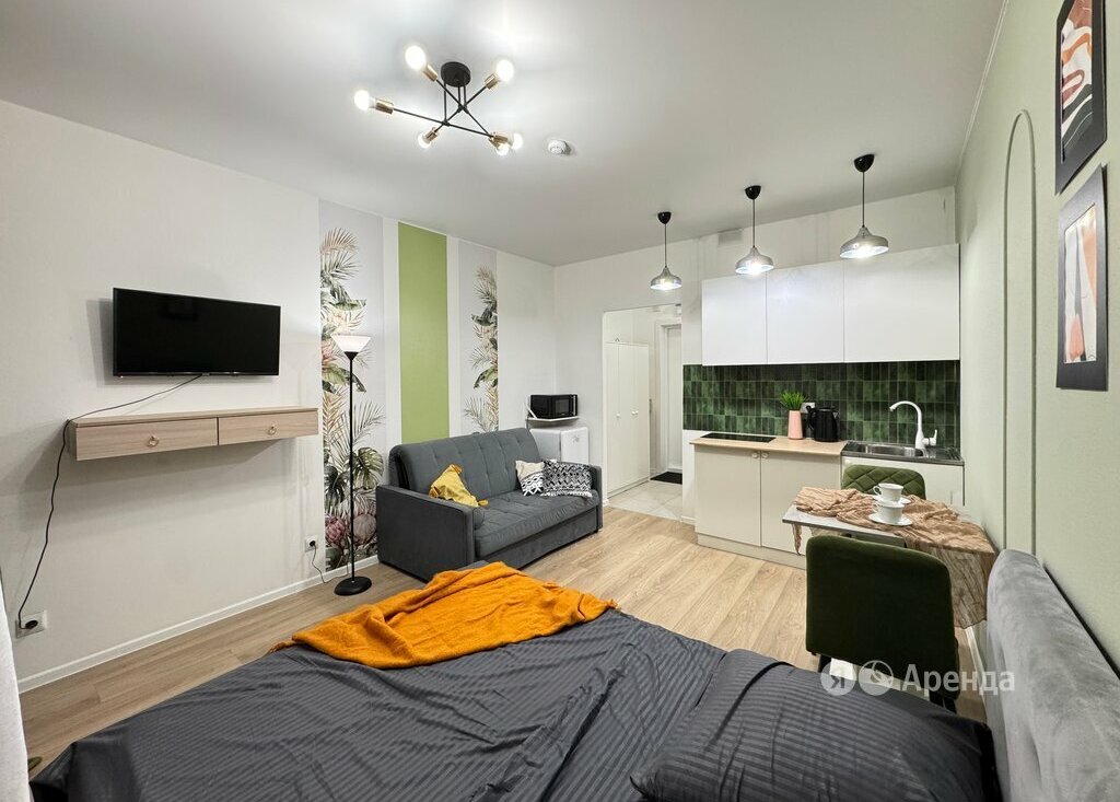 Сдаётся студия площадью 21 кв.м. с дизайнерским ремонтом на 21 этаже в 23-этажном доме на срок от 11 месяцев. Из техники есть: