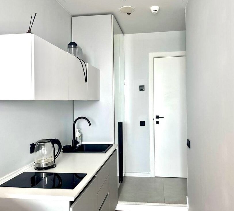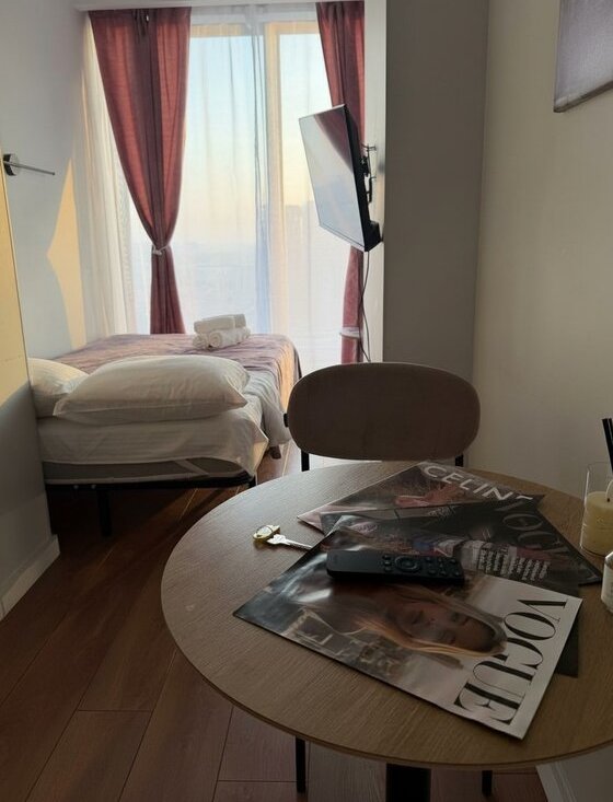 В небольшой студии все для проживания есть. Также включена уборка и замена белья 1 раз в неделю.