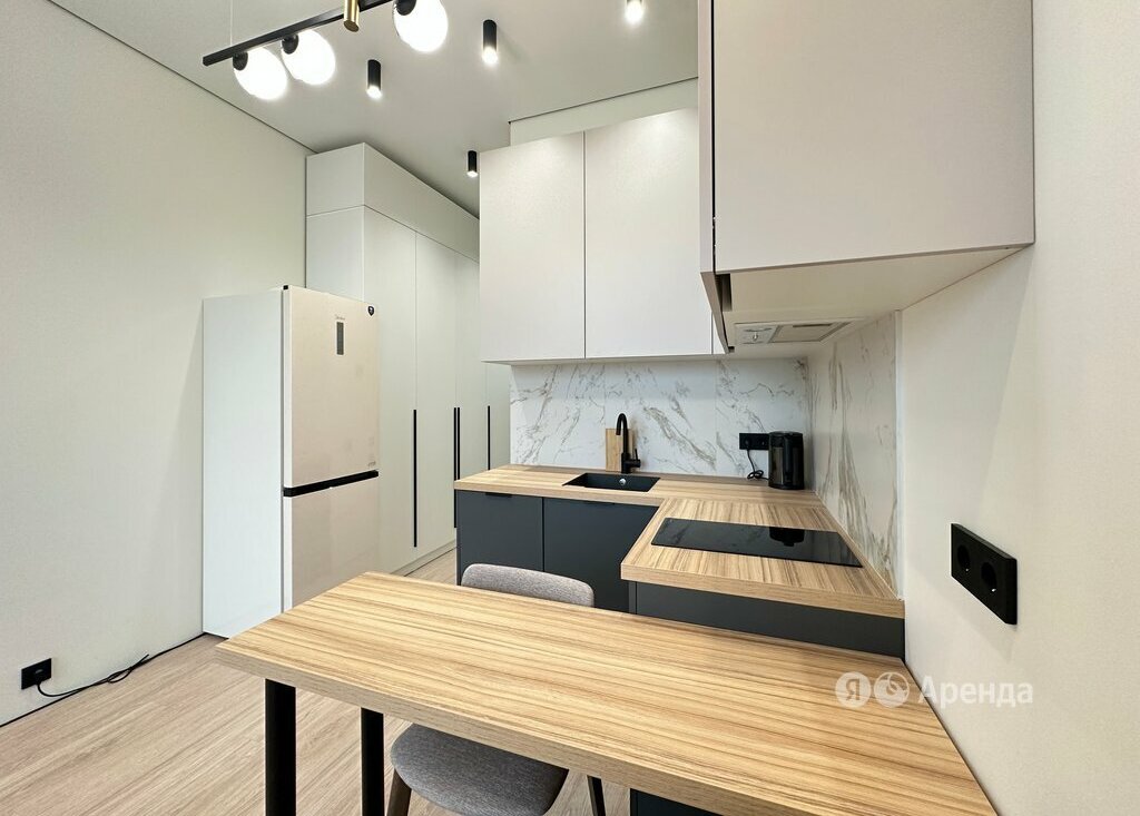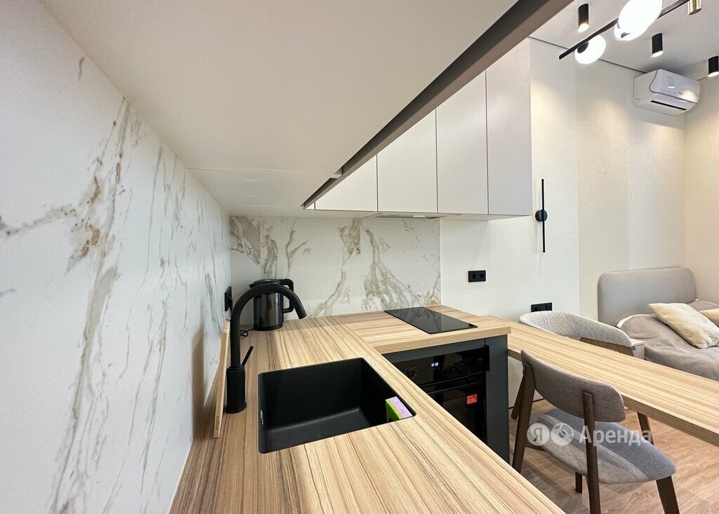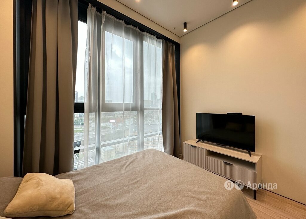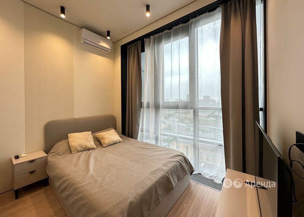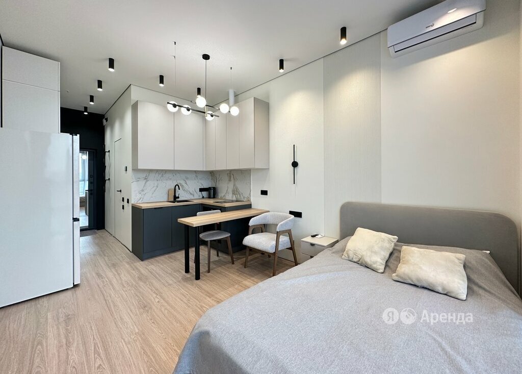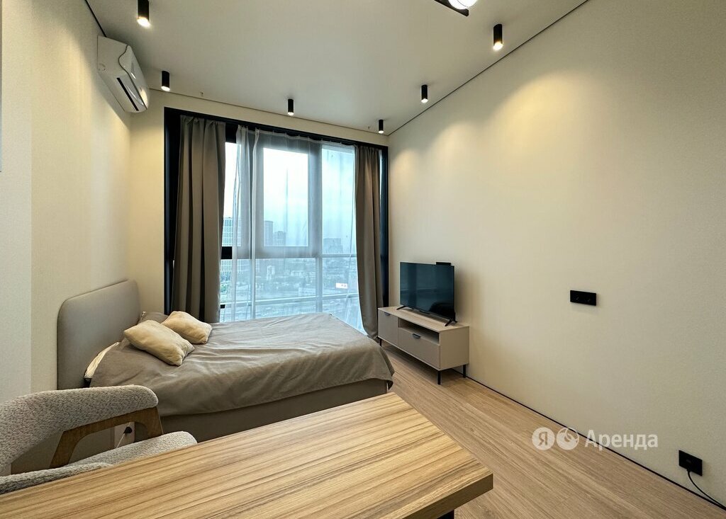 Сдаётся студия площадью 21 кв.м. с дизайнерским ремонтом на 22 этаже в 22-этажном доме на срок от 11 месяцев. Из техники есть: