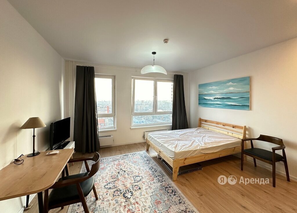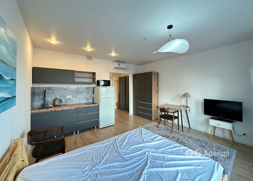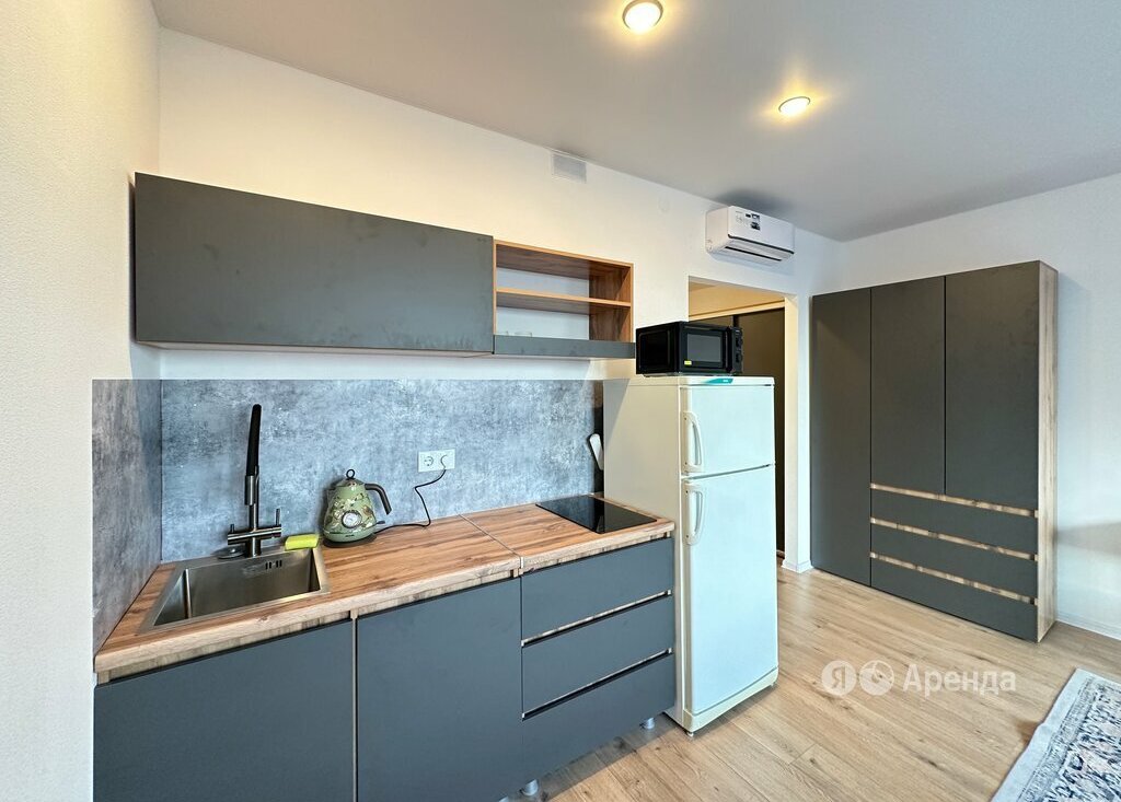 Сдаётся студия площадью 25 кв.м. с косметическим ремонтом на 27 этаже в 33-этажном доме на срок от 11 месяцев. Из техники есть: