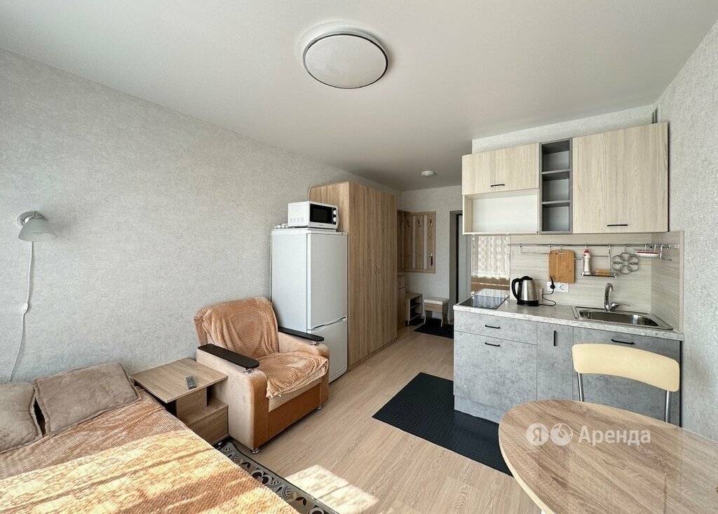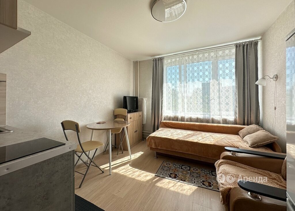 Сдаётся студия площадью 17 кв.м. с евроремонтом на 4 этаже в 5-этажном доме на срок от 11 месяцев. Из техники есть: