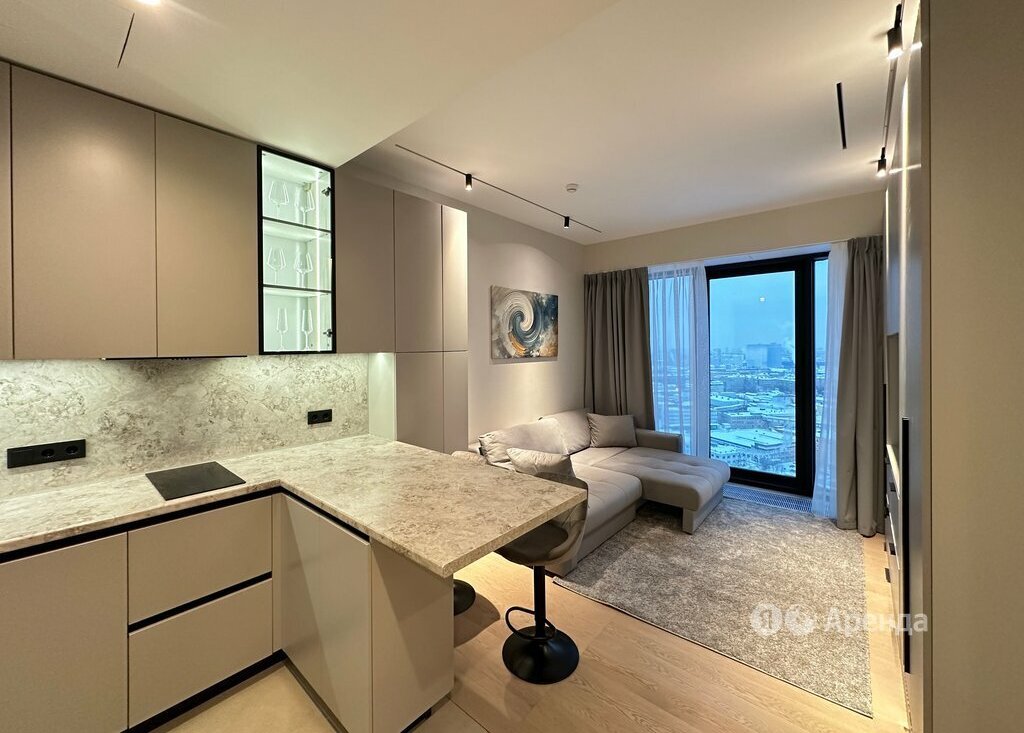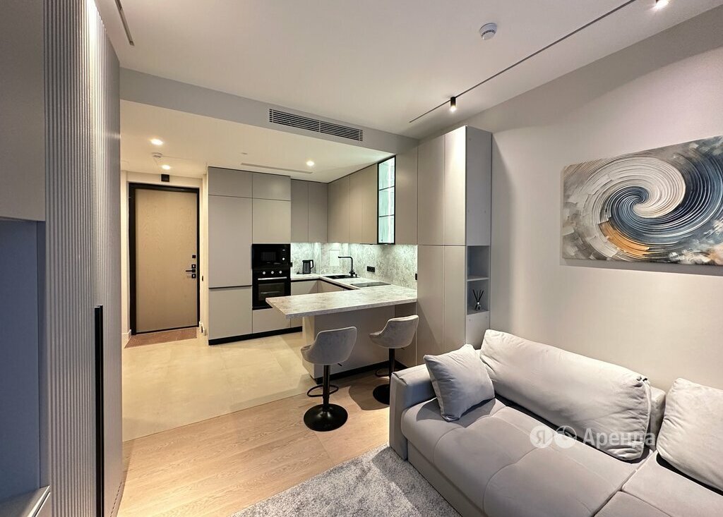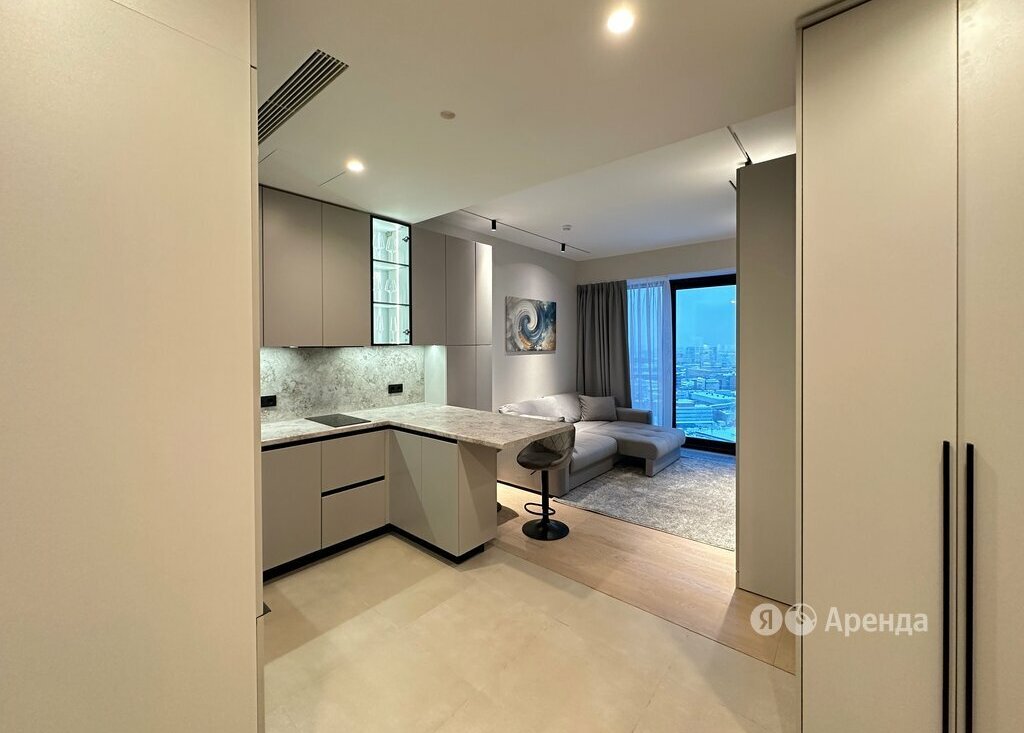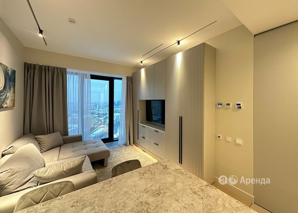 Сдаётся студия площадью 28 кв.м. с дизайнерским ремонтом на 28 этаже в 34-этажном доме на срок от 11 месяцев. Из техники есть: