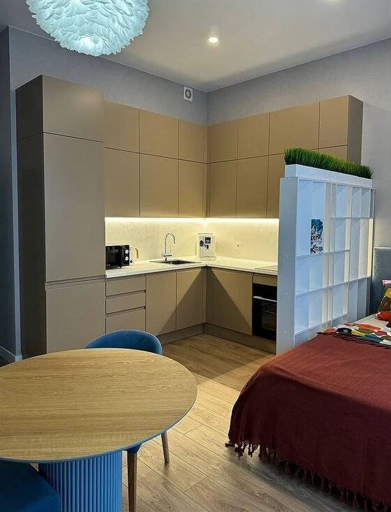 - кухня со встроенной техникой (холодильник, посудомоечная машина, духовой шкаф, индукционная плита, стиральная машина с сушкой)