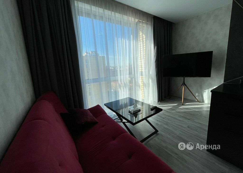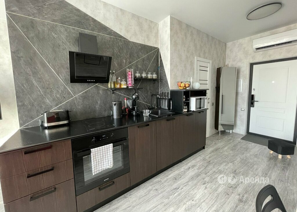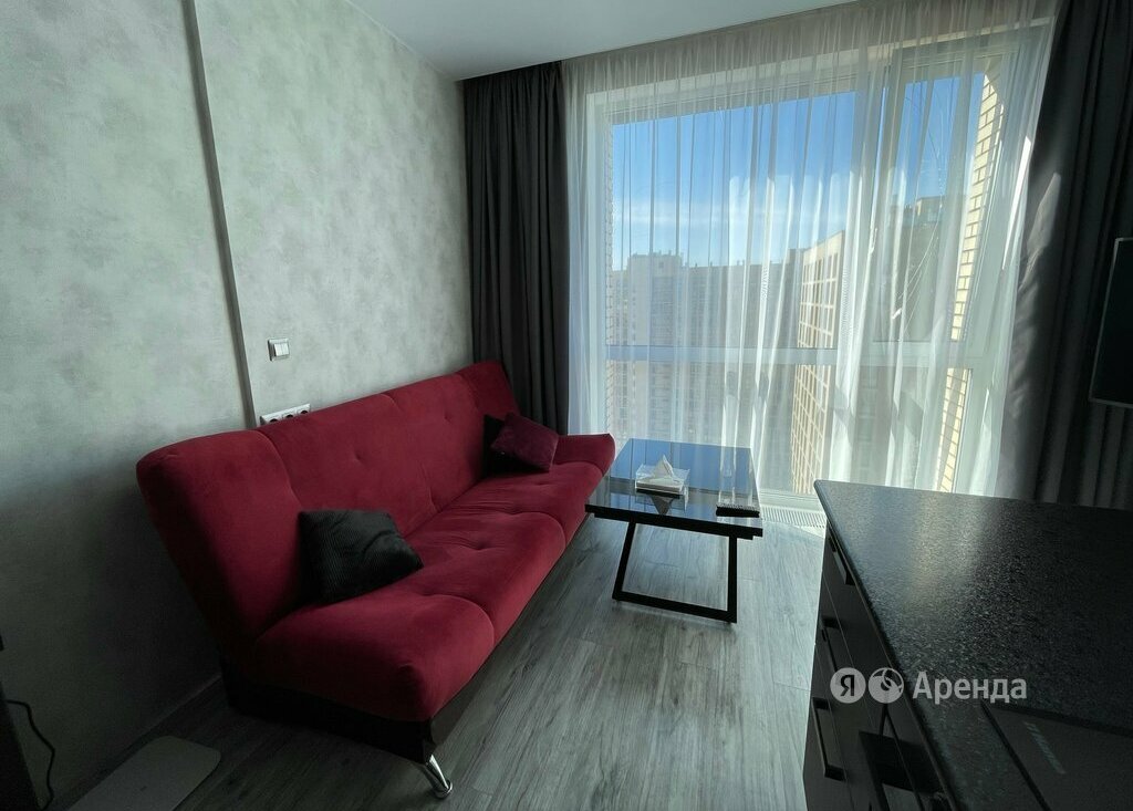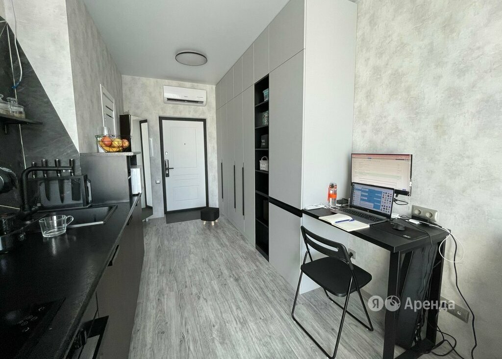 Сдаётся студия площадью 26 кв.м. с дизайнерским ремонтом на 21 этаже в 22-этажном доме на срок от 11 месяцев. Из техники есть: