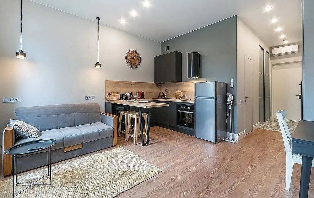 Студия оборудована всем необходимым для комфортного проживания: кондиционер,