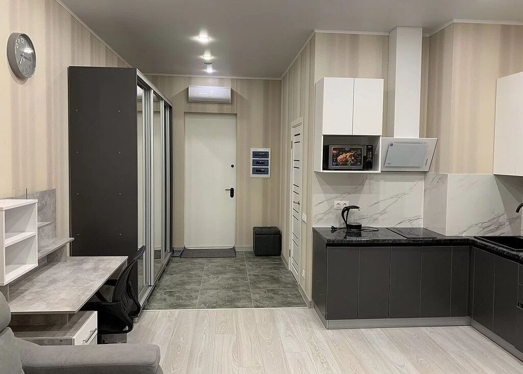 вся необходимая мебель (диван 2-х местный, кухонный гарнитур, обеденная зона, письменный стол, гардеробная, тумбы-комоды, обувница),
