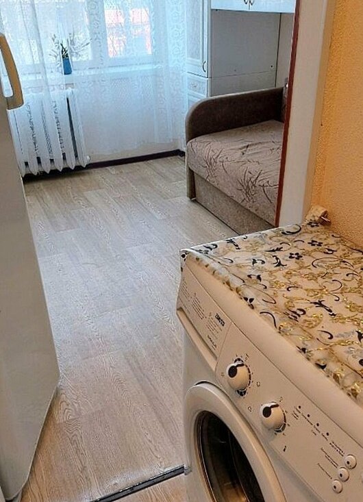 Симпатичная миниатюрная квартира с мебелью и бытовой техникой.