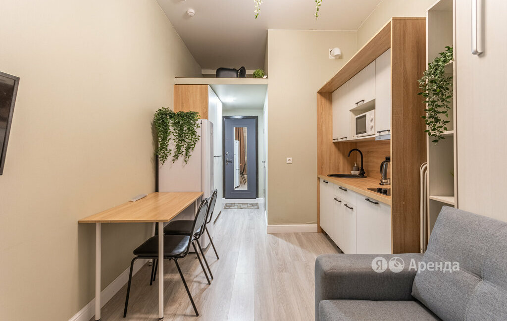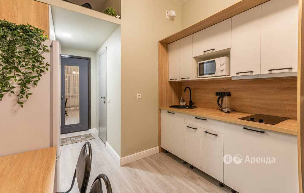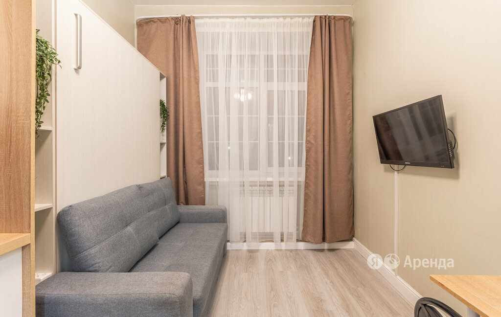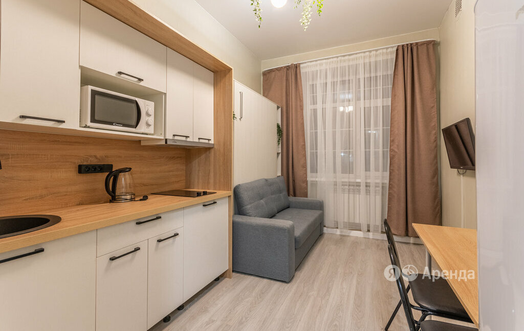 Сдаётся студия площадью 16 кв.м. с евроремонтом на 1 этаже в 6-этажном доме на срок от 11 месяцев. Из техники есть:
