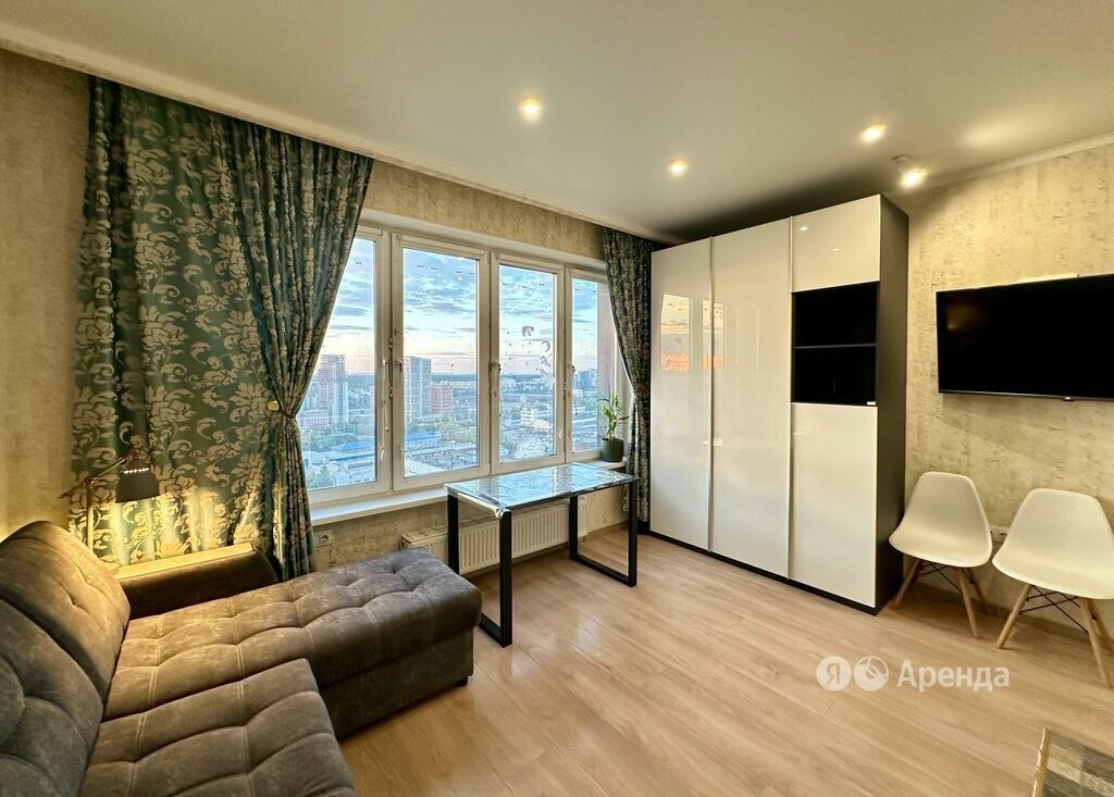 Сдаётся студия площадью 28 кв.м. с евроремонтом на 23 этаже в 39-этажном доме на срок от 11 месяцев. Из техники есть: