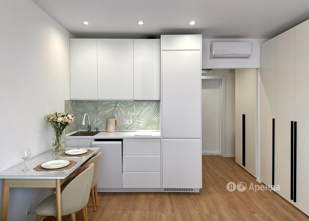 Сдаётся студия площадью 24 кв.м. с косметическим ремонтом на 19 этаже в 28-этажном доме на срок от 11 месяцев. Из техники есть: