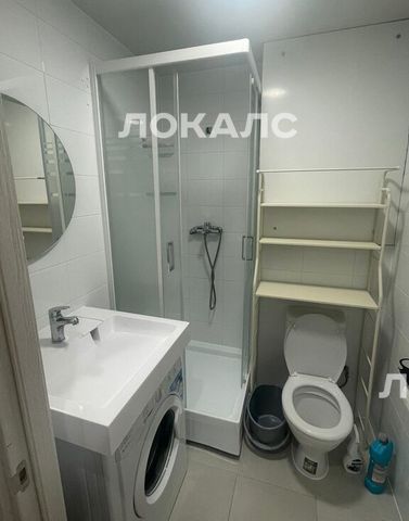 Санузел совмещенный; душевая, есть полноразмерная стиральная машина-автомат.