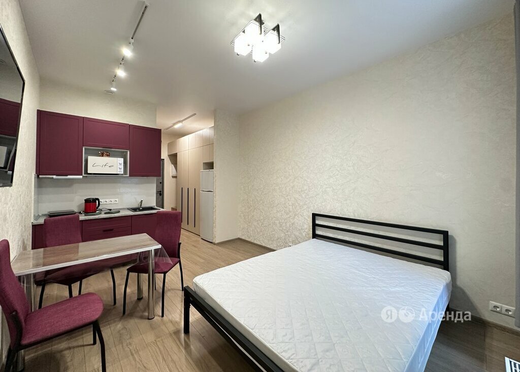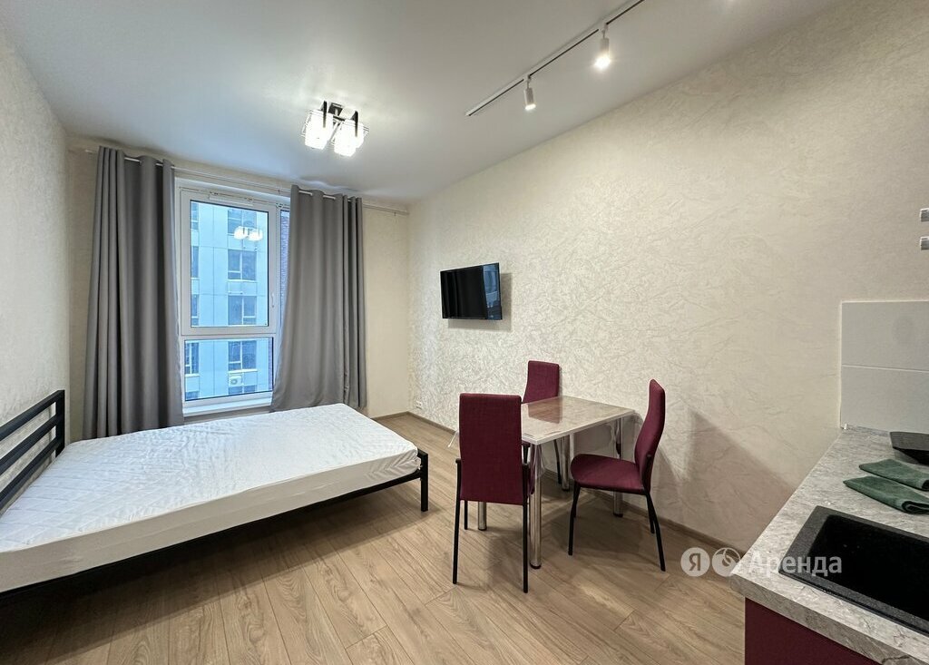 Сдаётся студия площадью 24 кв.м. с евроремонтом на 8 этаже в 22-этажном доме на срок от 11 месяцев. Из техники есть:
