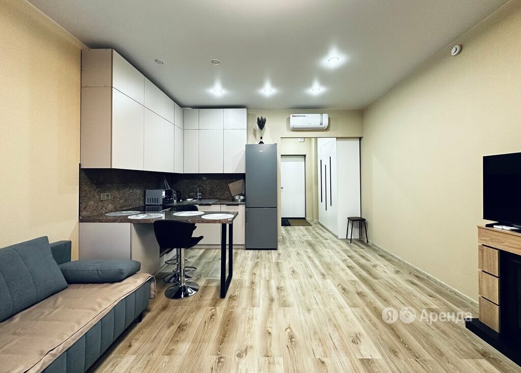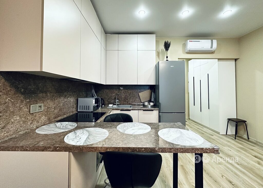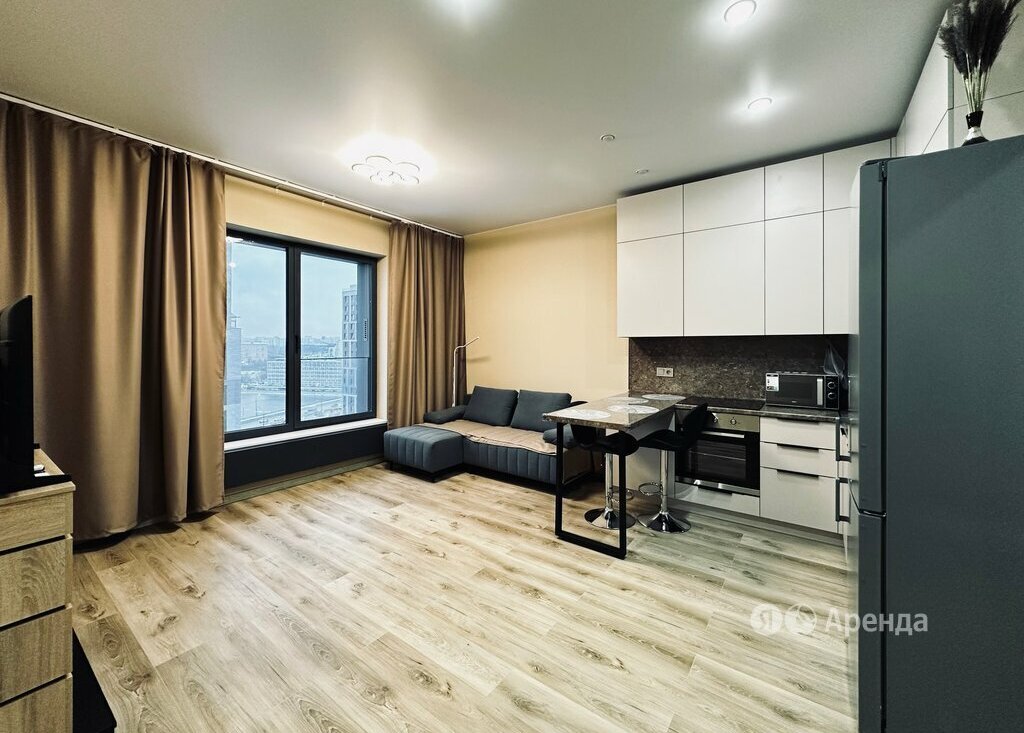 Сдаётся студия площадью 28 кв.м. с дизайнерским ремонтом на 15 этаже в 20-этажном доме на срок от 11 месяцев. Из техники есть: