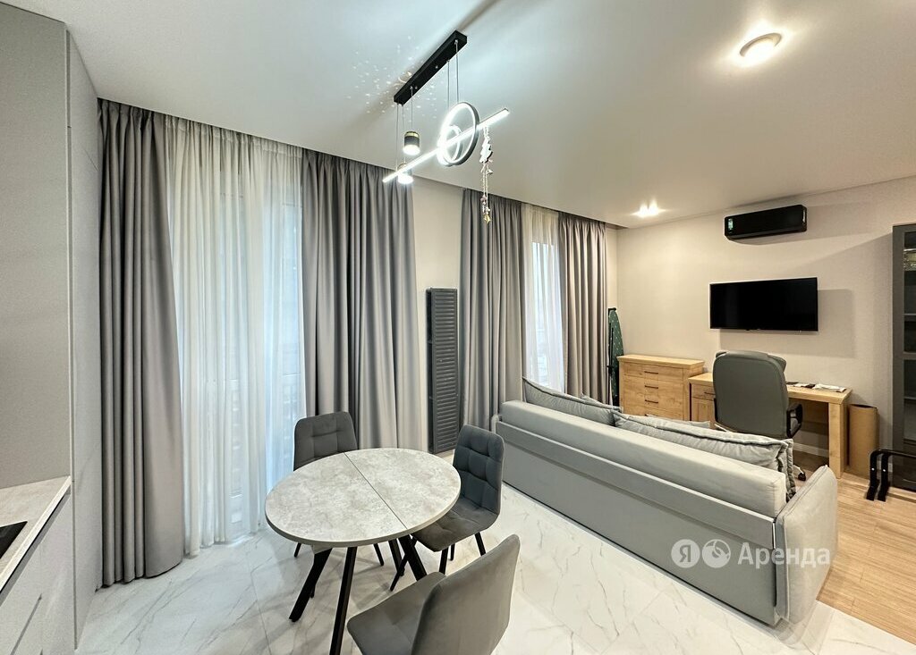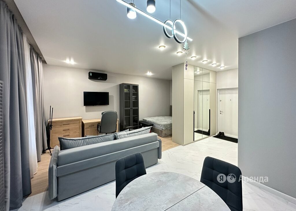 Сдаётся студия площадью 37 кв.м. с евроремонтом на 5 этаже в 20-этажном доме на срок от 11 месяцев. Из техники есть: