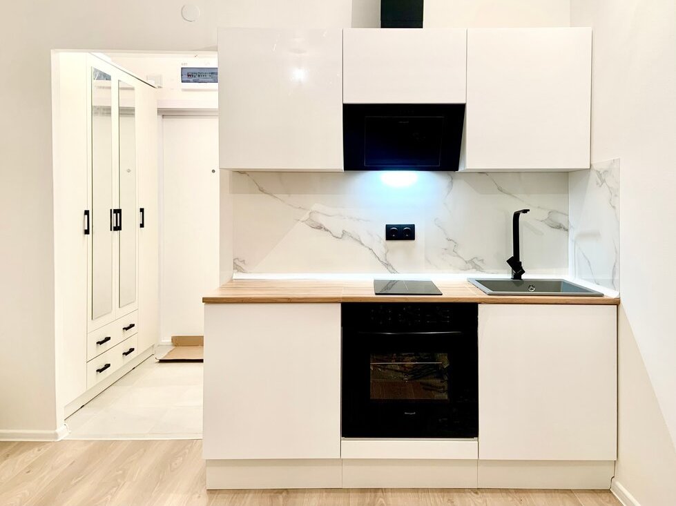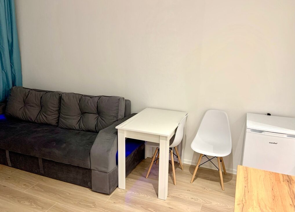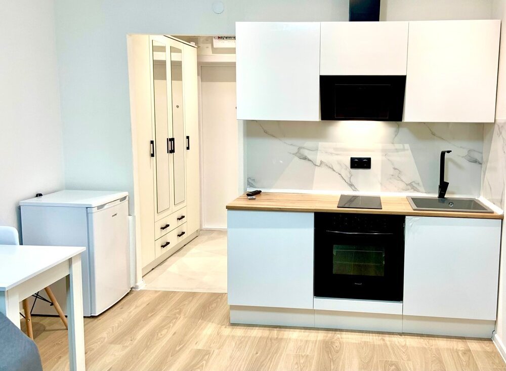 Есть все для жизни Телевизор, индукционная плита, духовой шкаф, холодильничек, стиральная машинка, утюг, посуда, сушилка.