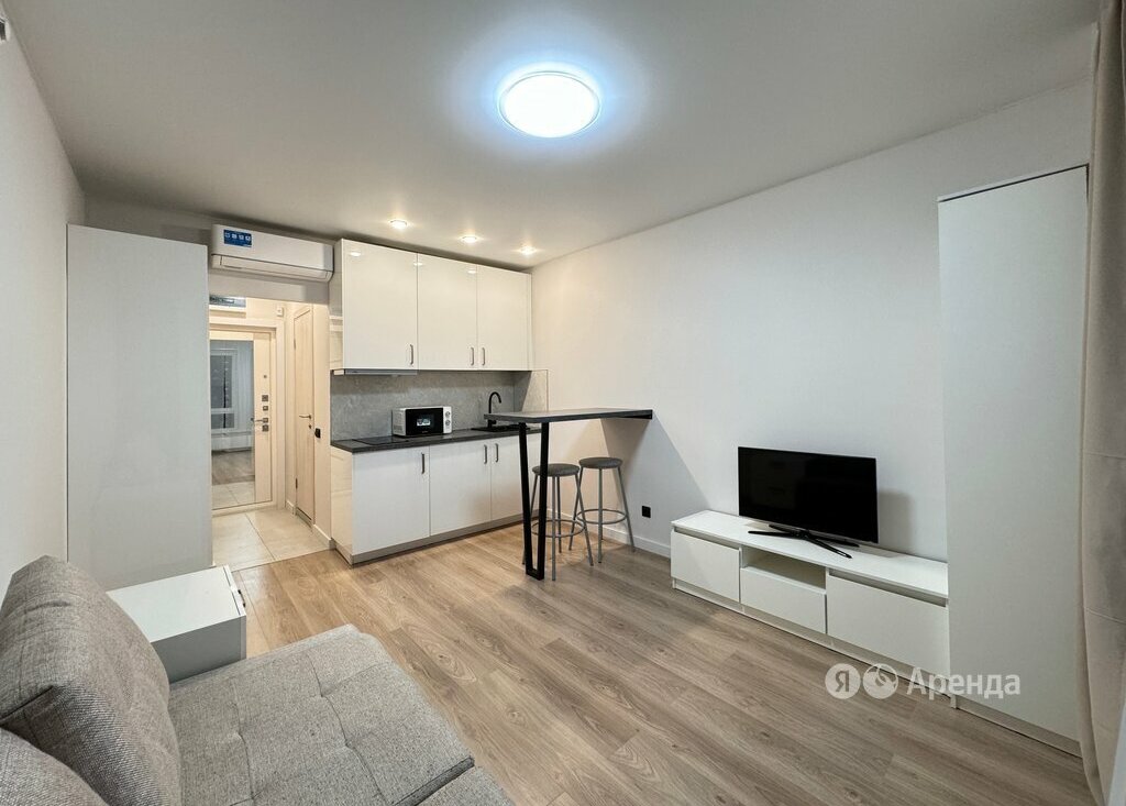 Сдаётся студия площадью 20 кв.м. с косметическим ремонтом на 7 этаже в 32-этажном доме на срок от 11 месяцев. Из техники есть: