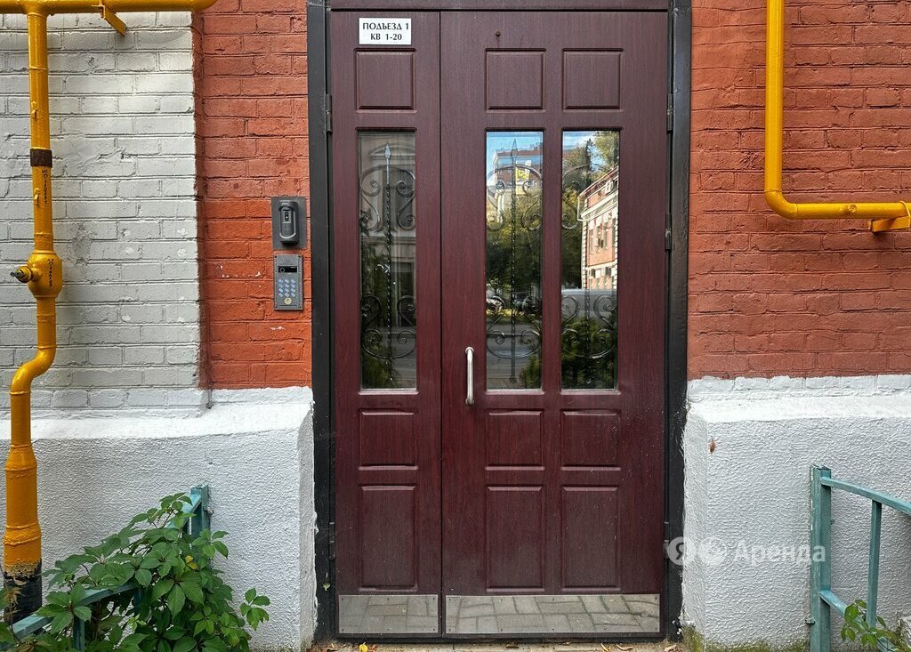 Дом - кирпичный, окна выходят во двор. Во дворе есть парковка за шлагбаумом.