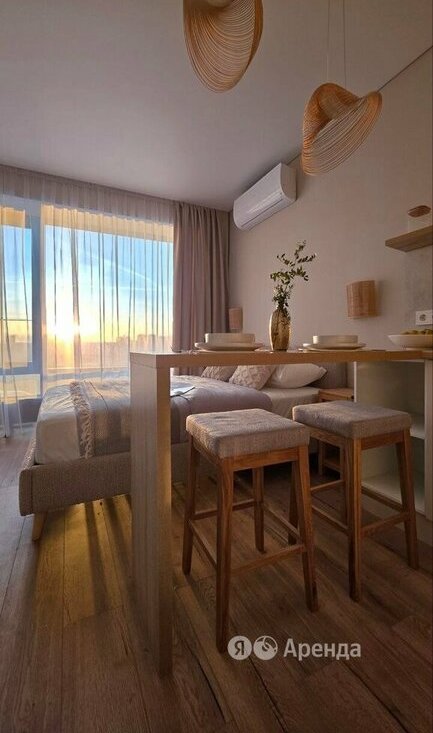 Сдаётся студия площадью 25 кв.м. с дизайнерским ремонтом на 13 этаже в 31-этажном доме на срок от 11 месяцев. Из техники есть: