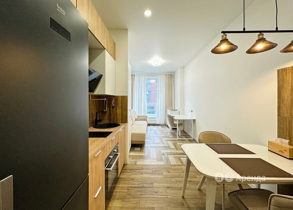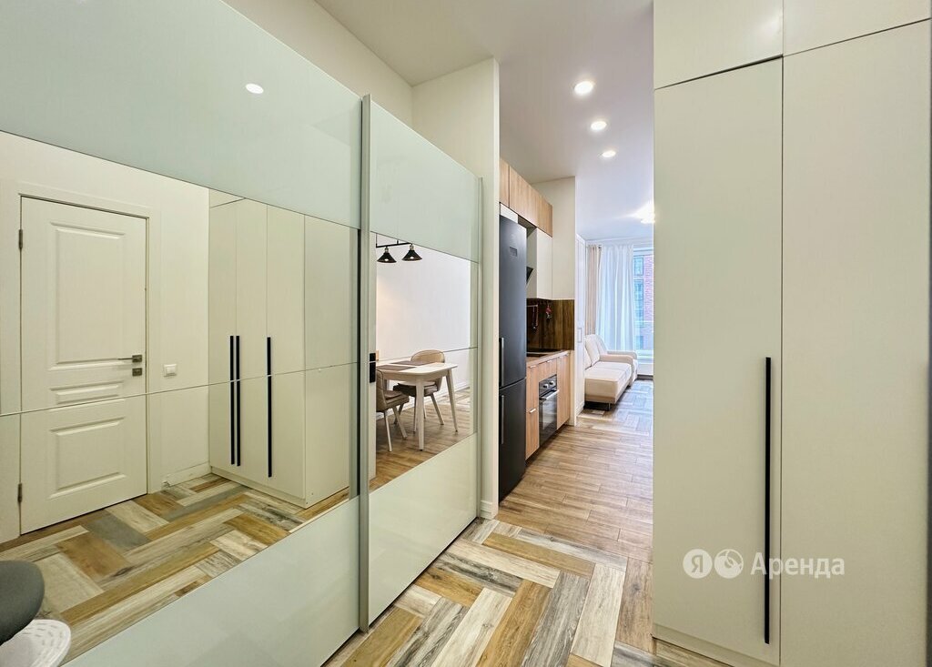 Сдаётся студия площадью 27 кв.м. с евроремонтом на 2 этаже в 20-этажном доме на срок от 11 месяцев. Из техники есть: