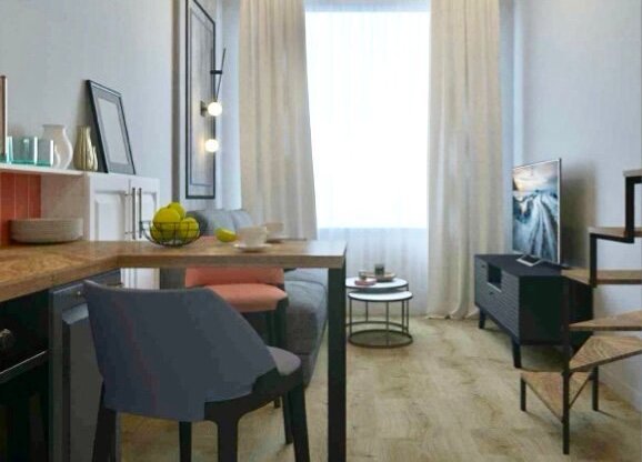 Пpодаeтся двухуровневая студия без ремонта.