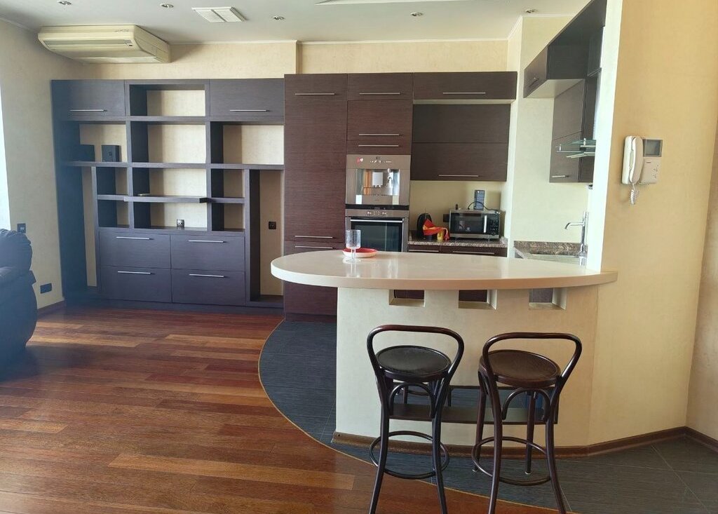 В квартире сделан качественный дизайнерский ремонт, тёплые полы, итальянская плитка, сантехника Villeroy & Boch, мебель Bo Concept. Бытовая техника Miele, Bosch, Gaggenau. В квартире продуманная выделенная зона хранения для всего необходимого, кондиционер, телевизор. Квартира после генерального клининга и полностью готова к проживанию.